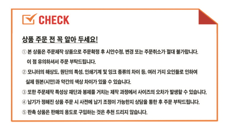 • Àμ⸦ ÇϽô °æ¿ì, ´ç»ç¿¡¼­´Â °í°´´ÔÀÌ º¸³»ÁֽŠ¿ø°í ¹× µµ¾ÈÀ» ±âº»À¸·Î ÇÏ¿© Çʸ§À» Á¦ÀÛÇϰí, Á¤È®¼ºÀ» ±âÇϱâ À§ÇØ °í°´´Ô°ú ÀçÈ®ÀÎ ÈÄ ½ÇÁ¦ Àμâ ÀÛ¾÷À» ÇÕ´Ï´Ù. (ÃÖÁ¾ µðÀÚÀÎ ½Ã¾ÈÀÇ À߸øµÈ È®ÀÎÀº Ã¥ÀÓÀÌ ¼ö¹ÝµÇ¹Ç·Î Á¤È®ÇÏ°Ô È®ÀÎÇÏ¿© Áֽñ⠹ٶø´Ï´Ù.)